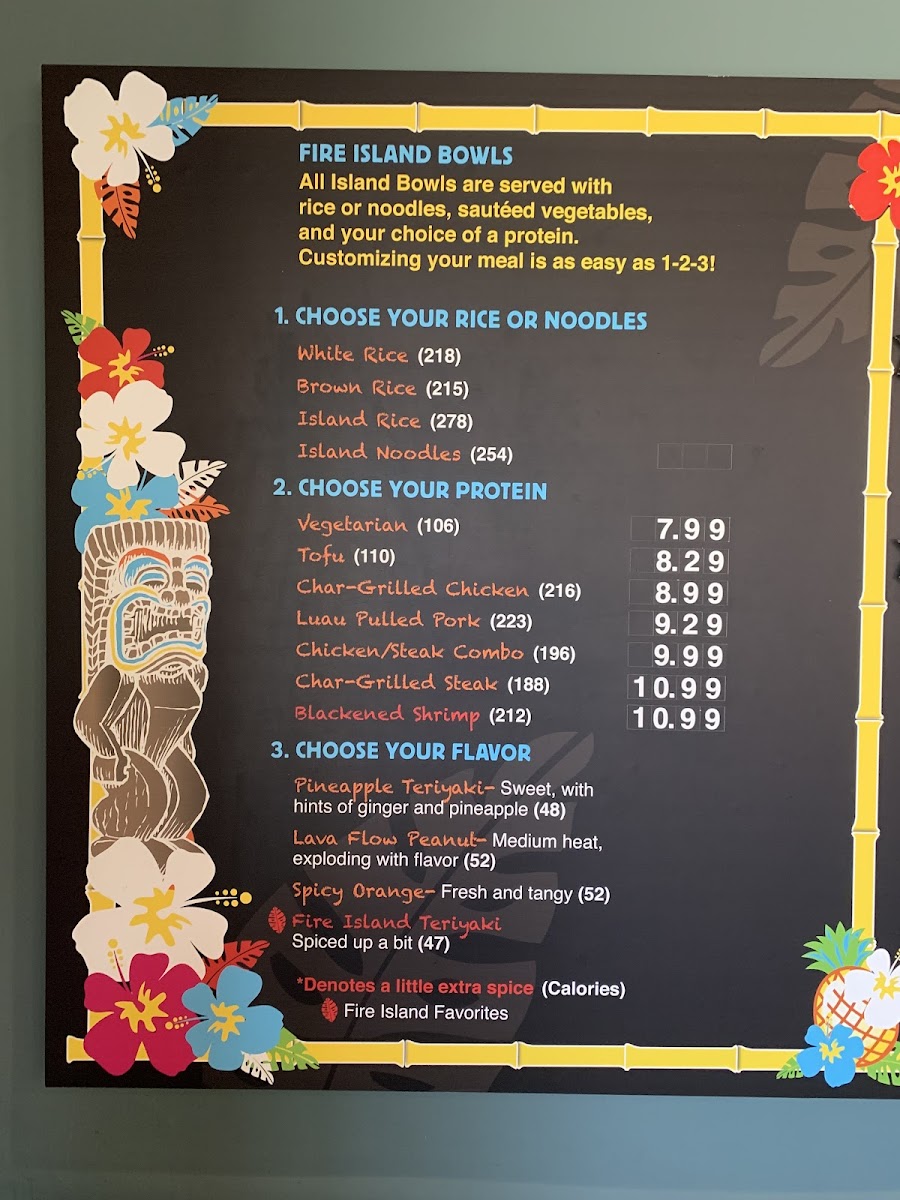 Our juicy char-grilled steak served with rice or noodles, sauteed vegetables & tropical macaroni salad(50% more than our bowls)