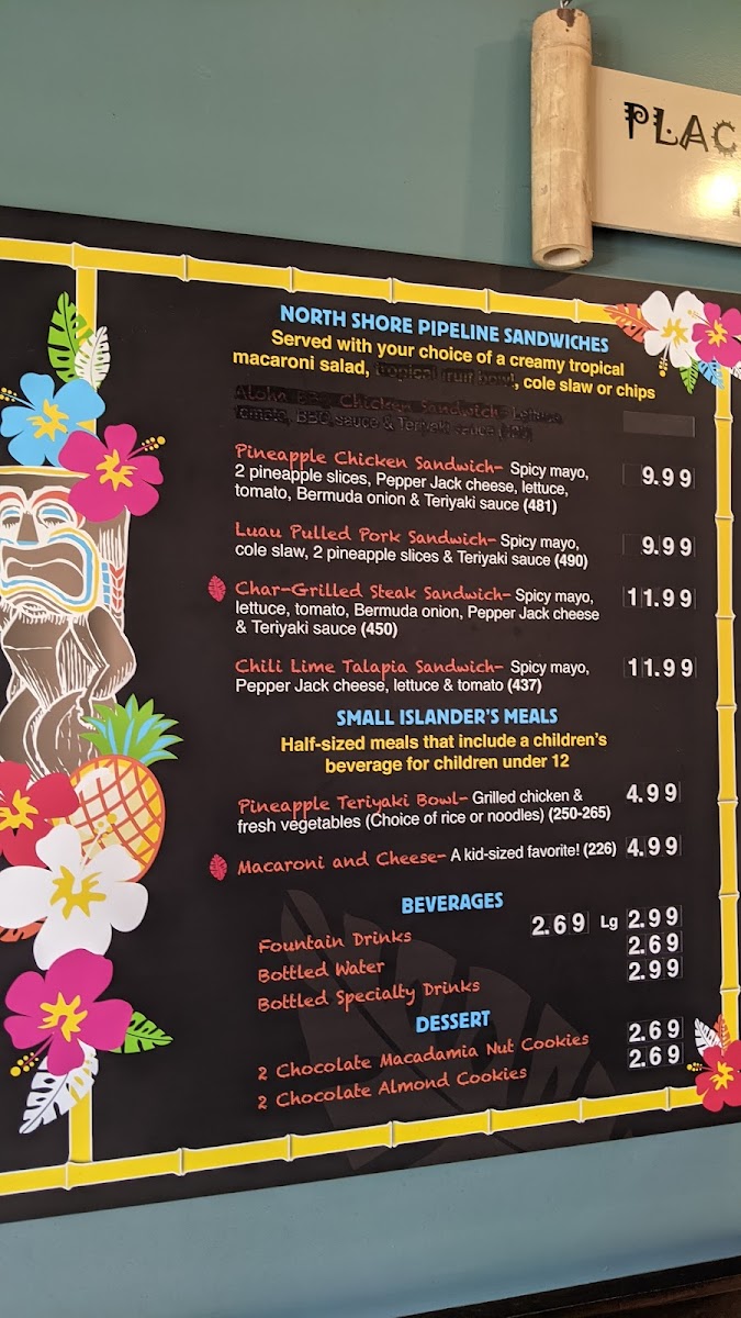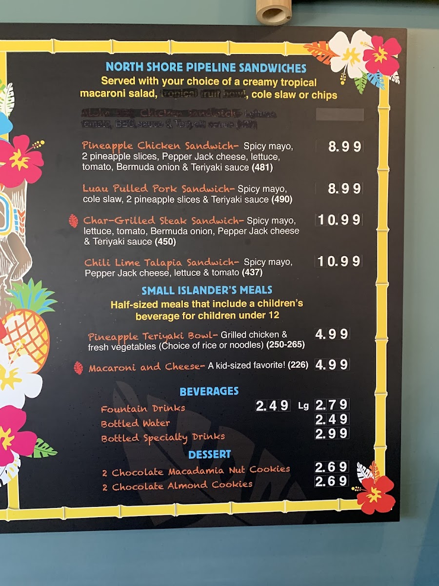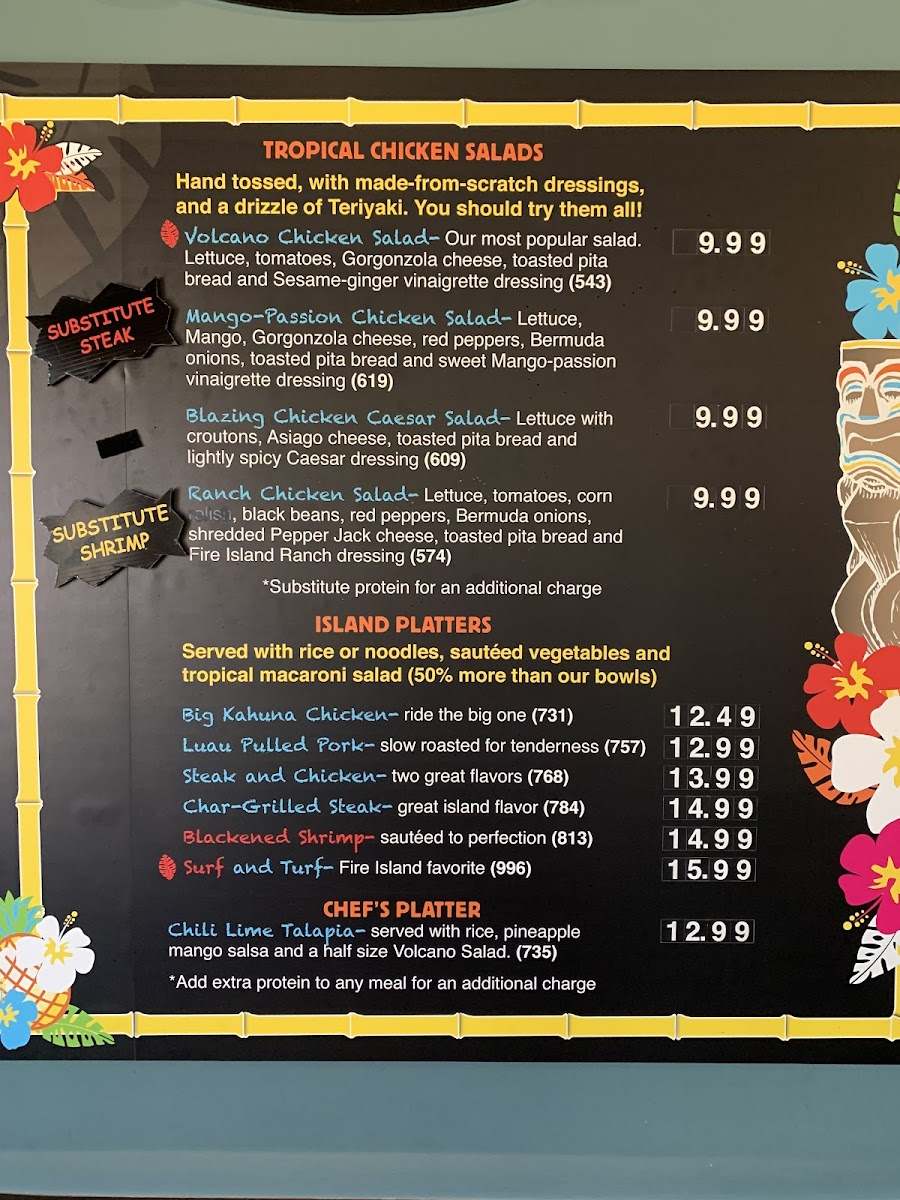 Ride the big one! Our char-grilled chicken served with rice or noodles, sauteed vegetables & tropical macaroni salad(50% more than our bowls)