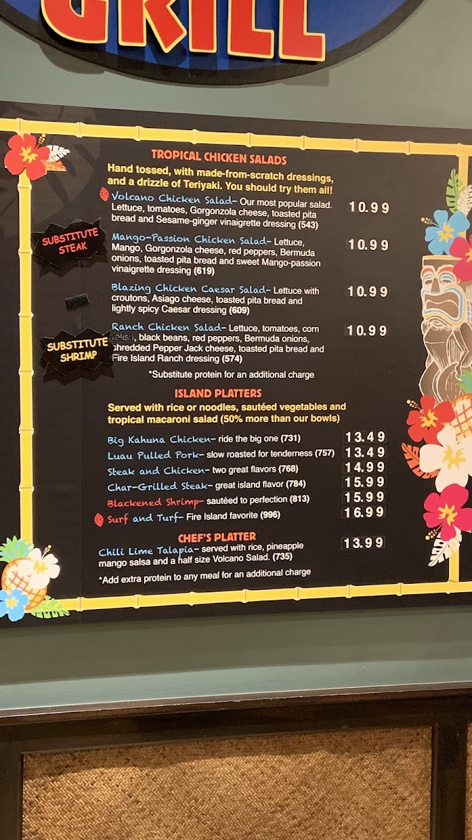 Served with your choice of rice, Pineapple Mango Salsa & a half size Volcano Salad